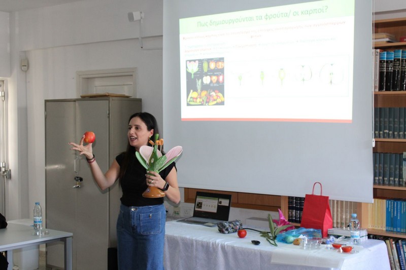 Συγκεκριμένα, στις 14 Οκτωβρίου 2025, έγινε ενημέρωση για την Ημέρα Τροφίμων 2025 και τον Παγκόσμιο διαγωνισμό αφίσας που μπορούν να λάβουν μέρος οι μαθητές/τριες, από τη καθ. Αγωγής Υγείας Παναγιώτα Παρτάκκη. Στην συνέχεια η ερευνήτρια κα Χρυστάλλα Αντωνίου από το Ευρωπαϊκό Πανεπιστήμιο έκανε παρουσίαση για την αναπαραγωγή των Φυτών - «Πως από το άνθος δημιουργείται ο καρπός» και «Τρόποι διατήρησης των Φρούτων», και τέλος εκπαιδευτικοί και μαθητές/τριες απόλαυσαν κέρασμα υγιεινού σνακ με φρούτα.